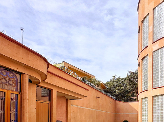 -ACABADOS DE CANTERA ROSA EN EL EXTERIOR E INTERIORES DE MADERA DE CAOBA.